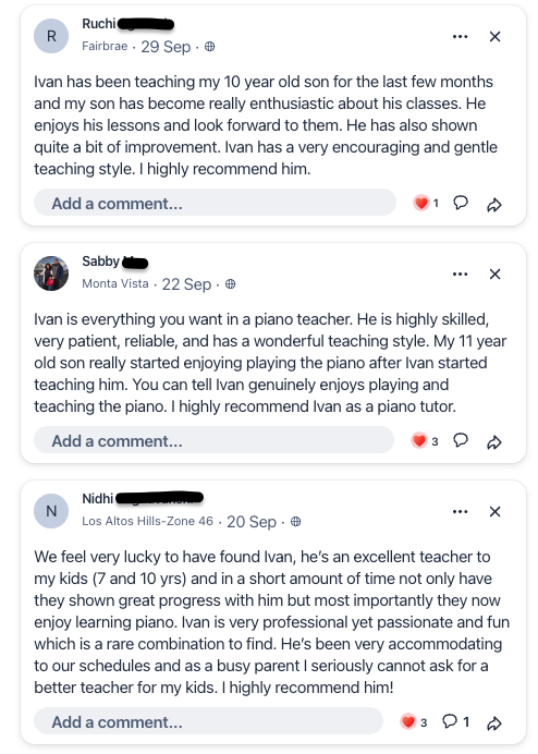 Lessons can be booked by calling or texting the number (408)250-7330, or by emailing otterlymusicschool@gmail.com.